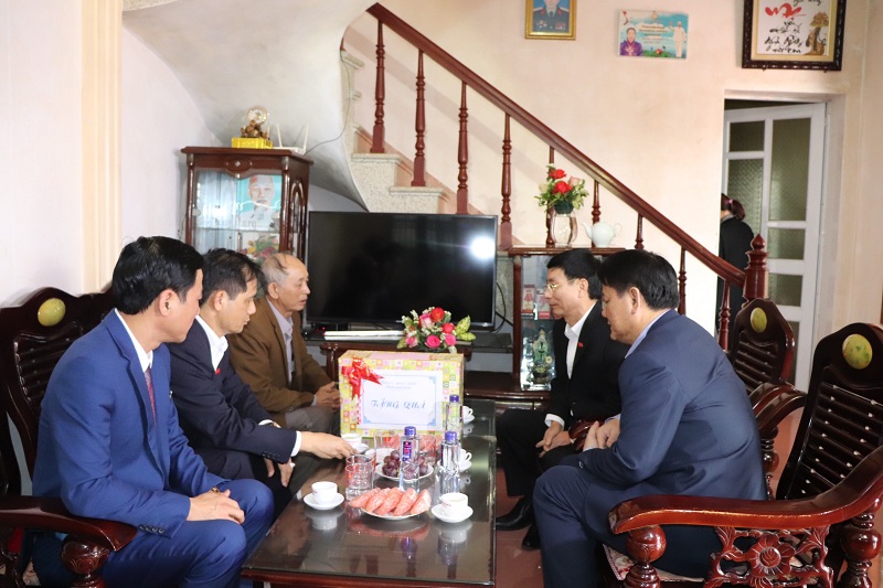 Đoàn đã tới thăm hỏi, chúc Tết và tặng quà mẹ Việt Nam anh hùng Hoàng Thị Biềng, sinh năm 1917, có chồng và con trai là liệt sỹ, hiện đang sống tại thôn Trung; thăm gia đình ông Đỗ Tiến Mỹ, sinh năm 1953, bệnh binh 61%, nhiễm chất độc hóa học tại thôn Thị.
