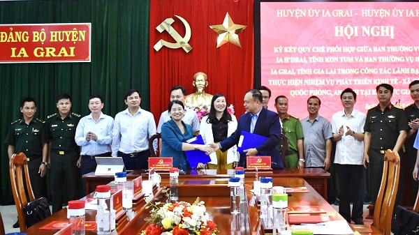Huyện ủy Ia Grai (Gia Lai) và Huyện ủy Ia H'Drai (Kon Tum) cùng ký kết Quy chế phối hợp.
