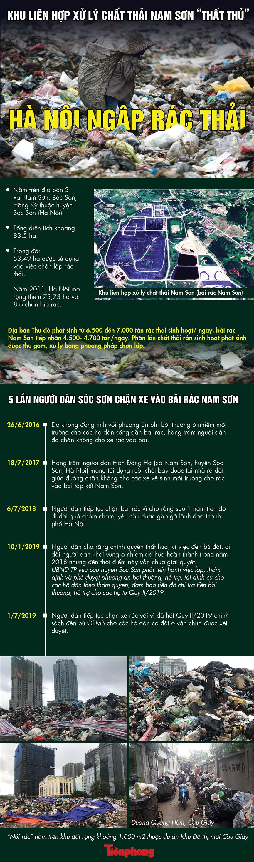 Người dân Sóc Sơn nhiều năm qua chật vật đấu tranh để được đi khỏi khu liên hợp xử lí chất thải Nam Sơn, bãi rác lớn nhất của Hà Nội. Đến nay đã là lần thứ 5 người dân nơi đây chặn xe vận chuyển rác khiến nhiều khu vực nội thành Hà Nội ngập rác thải.