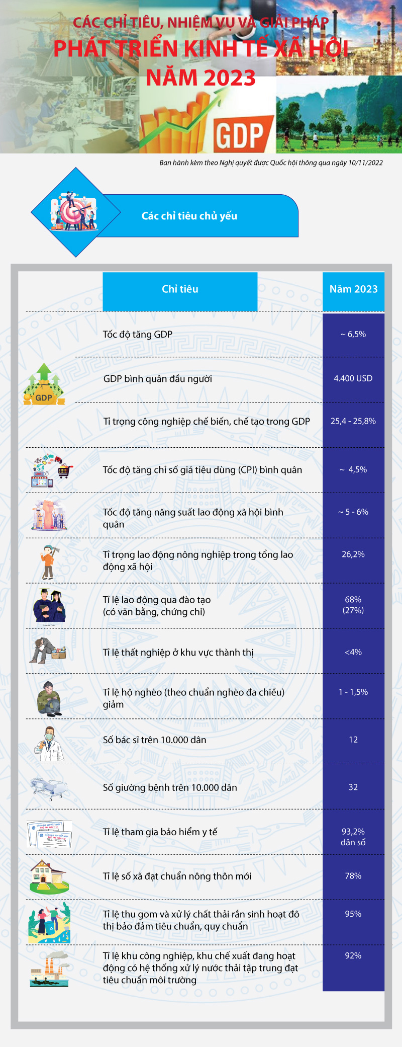 Infographics: Các chỉ tiêu, nhiệm vụ và giải pháp phát triển kinh tế xã hội năm 2023