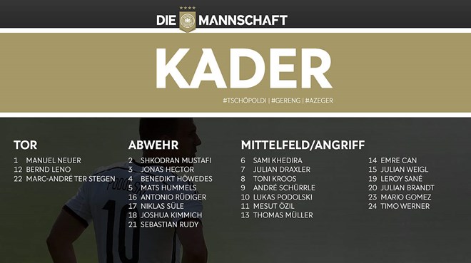 | Danh sách 24 cầu thủ được triệu tập (Ảnh: Nguồn Dfb.de) |