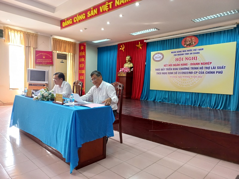Từ tháng 5 đến nay, Ngân hàng Nhà nước chi nhánh tỉnh An Giang đã quyết liệt triển khai Nghị định 31/2022/NĐ-CP ngày 20/5/2022 của Chính phủ về việc hỗ trợ lãi suất từ ngân sách nhà nước đối với khoản vay của doanh nghiệp/hợp tác xã/hộ kinh doanh, cùng các thông tư, chỉ thị có liên quan của Thống đốc Ngân hàng Nhà nước về chương trình hỗ trợ lãi suất theo Nghị định 31/2022/NĐ-CP.
