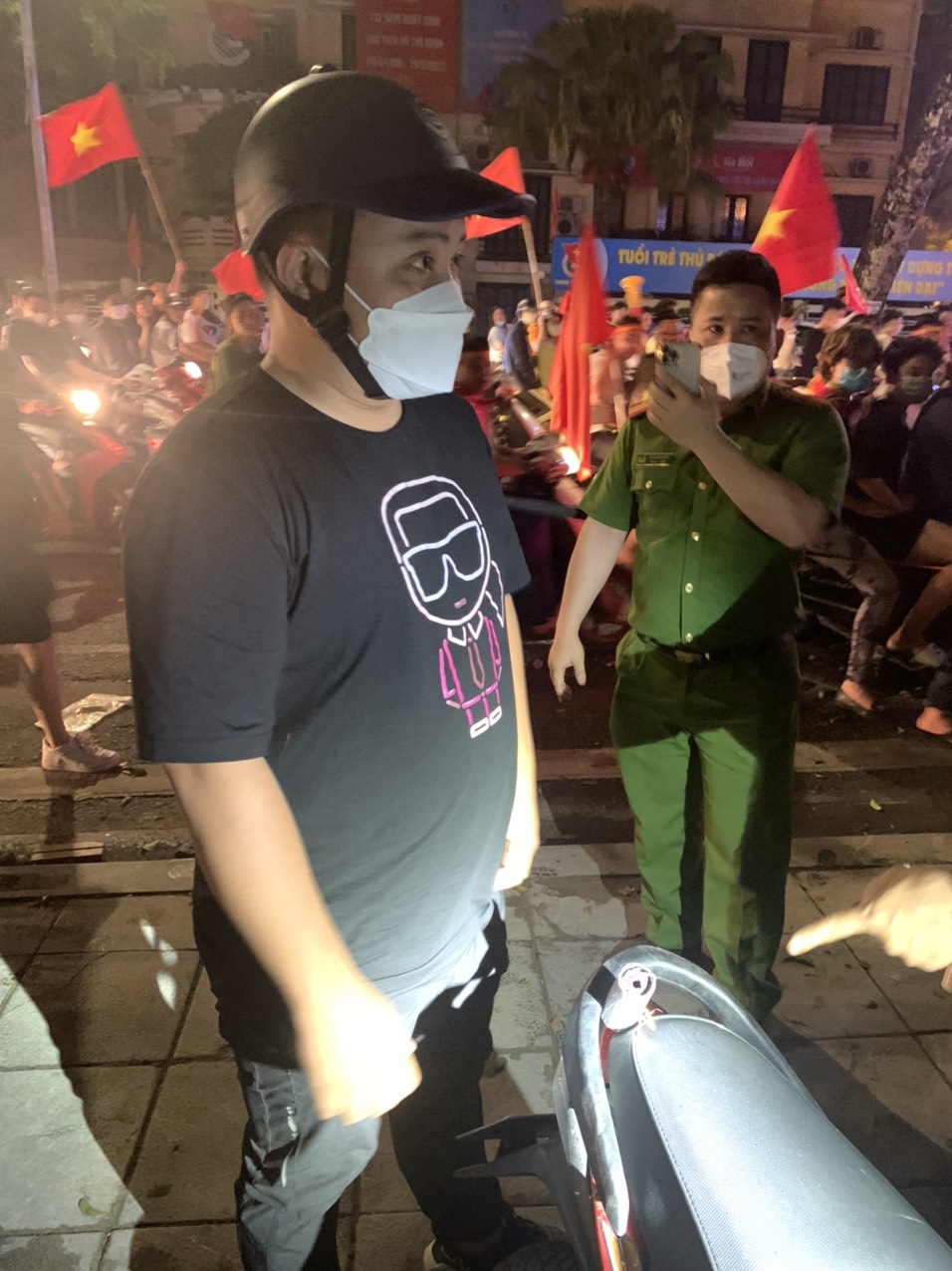 Khoảng 21h45, tại ngã tư Phan Chu Trinh – Lý Thường Kiệt, quận Hoàn Kiếm, tổ công tác Y5/141 Công an thành phố Hà Nội đã tạm giữ, bàn giao công an phường sở tại 2 thanh niên Dương Văn K (sinh năm 2000) và Triệu Văn Đ (sinh năm 2002 đều ở Thái Nguyên) có hành vi điều khiển xe mô tô sử dụng ống xả không đúng chủng loại, nẹt pô ầm ĩ gây mất trật tự công cộng. Tiếp theo vào 22h40 cùng ngày, cũng tại khu vực trên, tổ công tác đã tạm giữ Phạm Thế A (sinh năm 1992 ở quận Đống Đa, Hà Nội) vừa điều khiển xe máy biển kiểm soát 30M9 – 97XX vừa đốt pháo sáng.