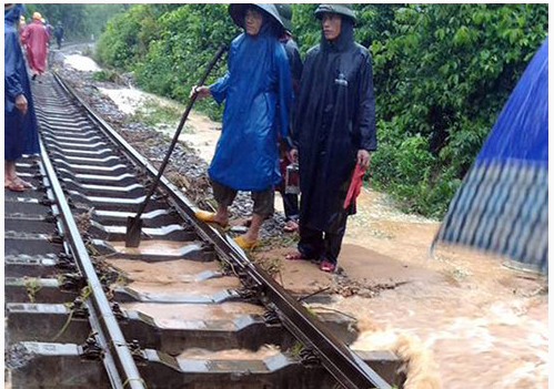 | Nhiều đoạn đường sắt qua Quảng Bình bị nước lũ cuốn trôi nền đường - Ảnh: Đường sắt VN |