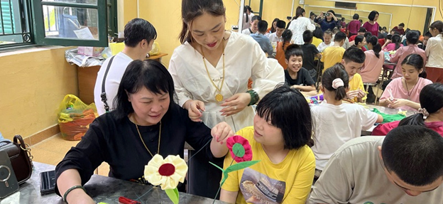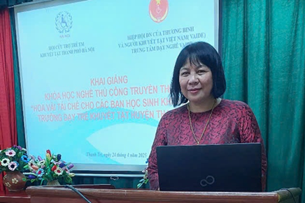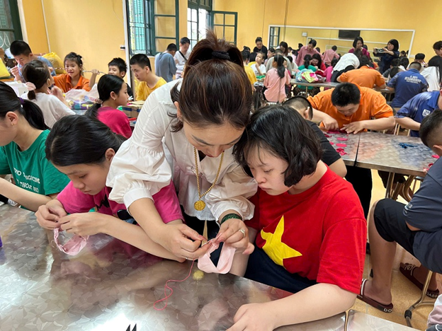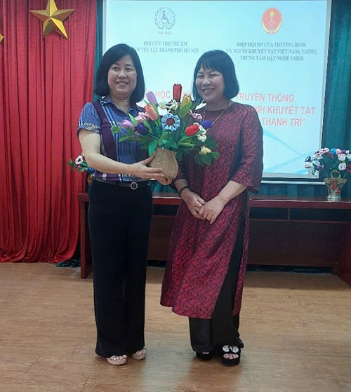 Được sự quan tâm, đồng hành và tài trợ hiệu quả, thiết thực của Hội Cứu trợ trẻ em Khuyết tật Thành phố Hà Nội, ngày 24/4/2025, Trung tâm Dạy nghề (thuộc Hiệp hội Doanh nghiệp của Thương binh và Người khuyết tật Việt Nam - Vaide) đã tổ chức Khai giảng Lớp học làm hoa vải cho các cháu học sinh Trường Dạy trẻ em Khuyết tật huyện Thanh Trì, Hà Nội.