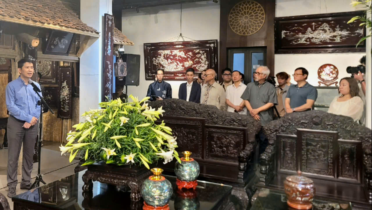 Nghệ nhân khảm trai Chuyên Mỹ trực tiếp thao tác tại sự kiện