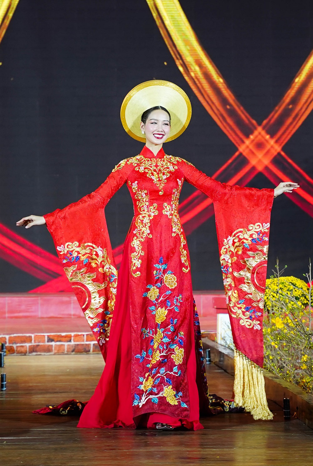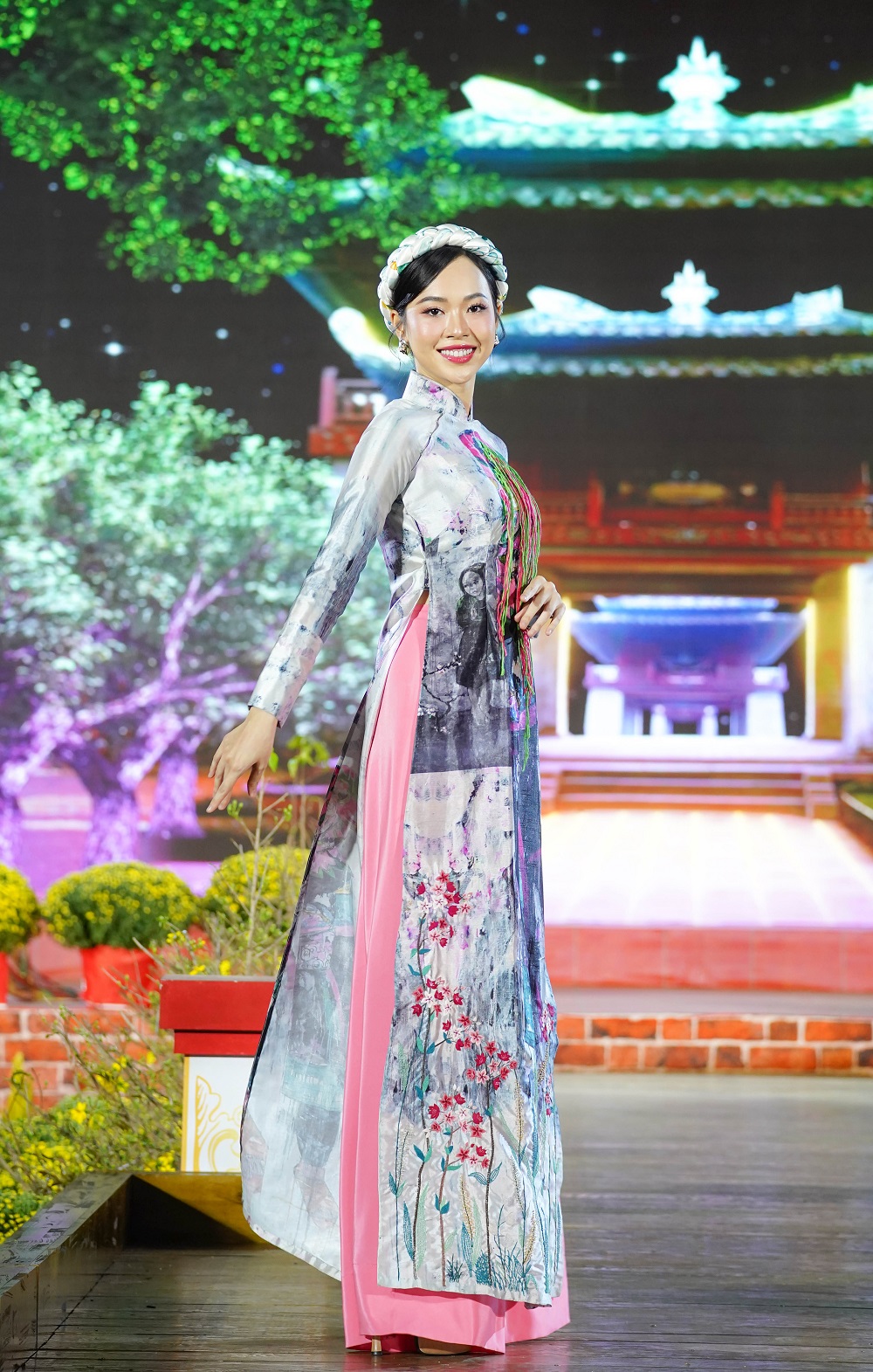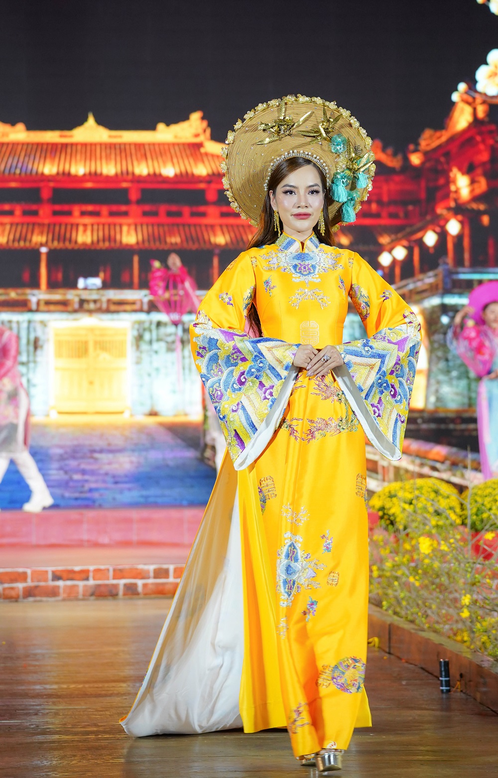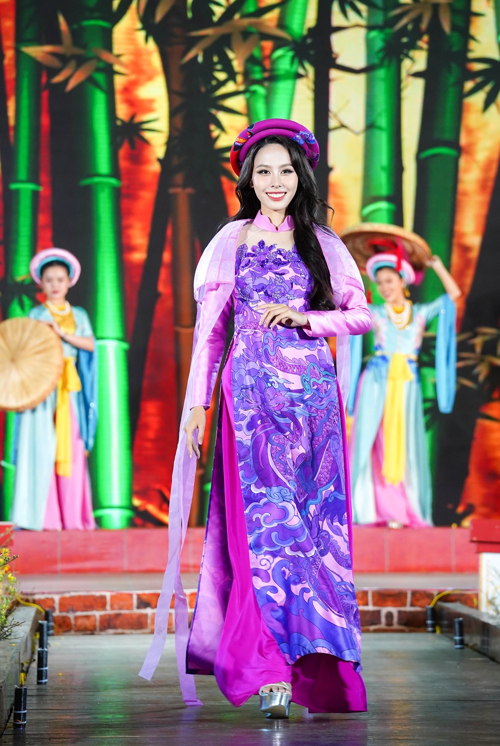 Các hoa hậu, đại sứ cùng trình diễn trang phục áo dài tại đêm khai mạc.