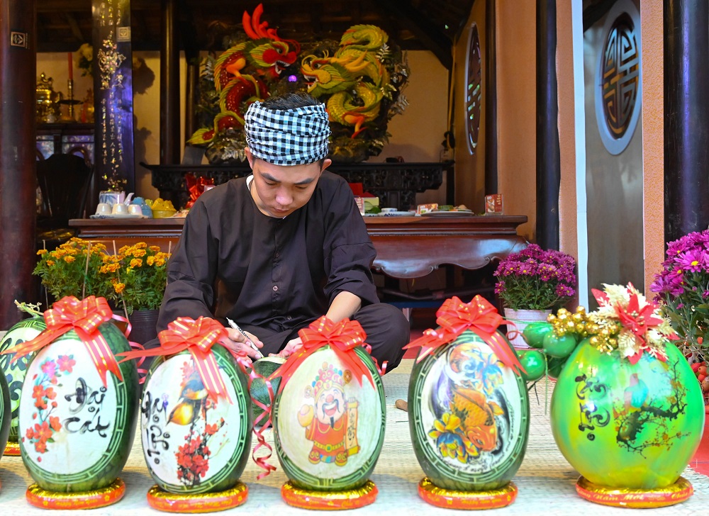 Từ bàn tay của các nghệ nhân đã biến những loại quả, trái cây bình thường trở thành các tác phẩm điêu khắc tinh xảo, đặc sắc.