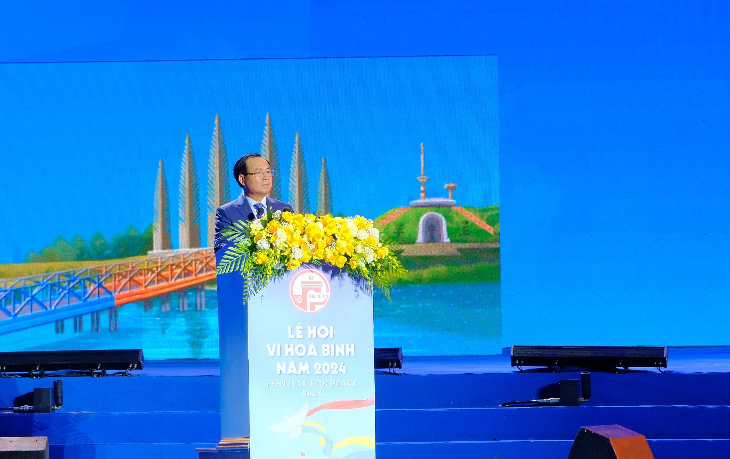 Ông Võ Văn Hưng, Chủ tịch UBND tỉnh Quảng Trị phát biểu tại chương trình khai mạc Lễ hội Vì Hòa bình