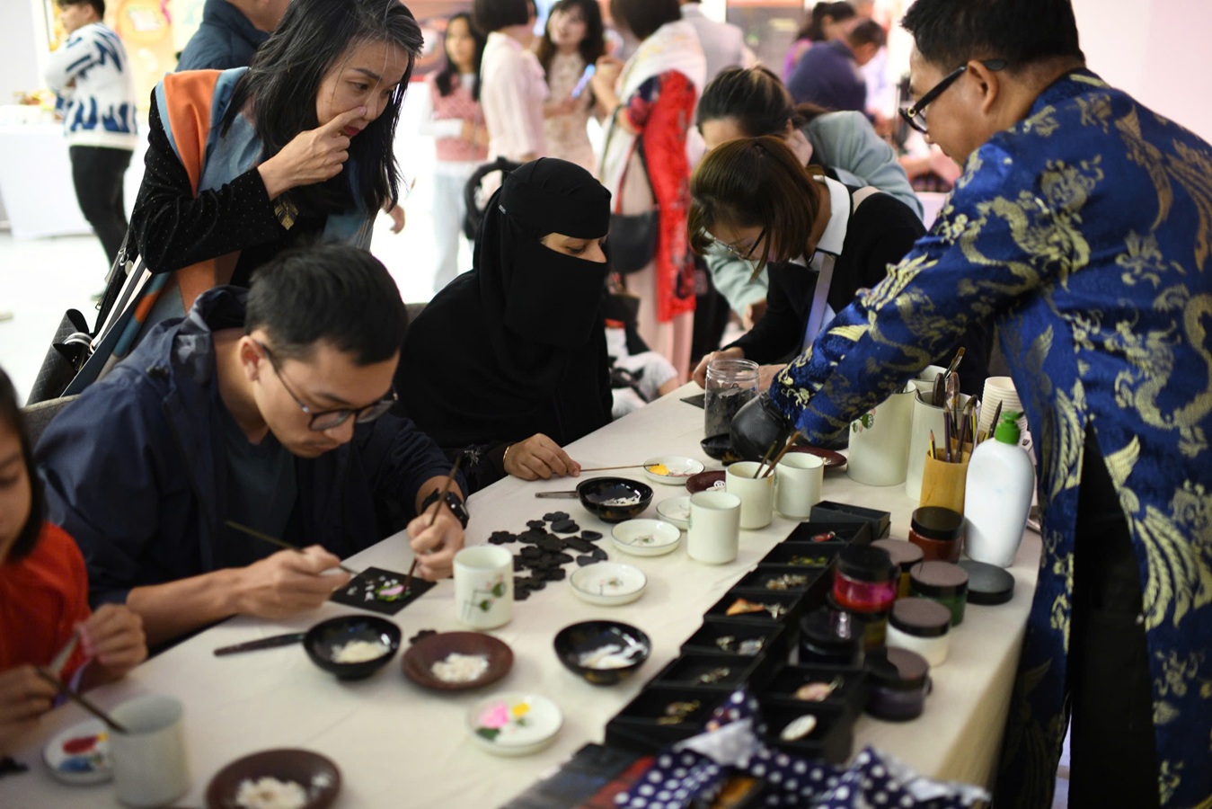 Công chúng Ả-rập Xê-út say sưa tạo tác với nghệ thuật tranh sơn mài truyền thống của Việt Nam.