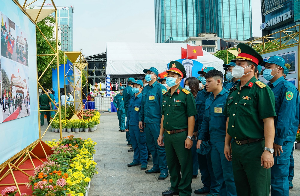 Đồng thời, lan tỏa ý nghĩa, những hoạt động, những việc làm giản dị, thiêng liêng của lực lượng làm nhiệm vụ bảo vệ biên cương tổ quốc. Bên cạnh đó, triển lãm còn giới thiệu về cuộc đấu tranh hào hùng của quân và dân miền Nam trong cuộc kháng chiến chống Mỹ cứu nước, thông qua các sự kiện tiêu biểu như: Ngày Toàn quốc chống Mỹ ngày 19 tháng 3 năm 1950; Phong trào Đồng Khởi 1960; Chiến thắng Ấp Bắc 1963; Phong trào “Ba sẵn sàng”; Cuộc Tổng tiến công và nổi dậy Xuân Mậu Thân 1968; Chiến dịch Hồ Chí Minh lịch sử; đại thắng mùa Xuân năm 1975 - giải phóng miền Nam, thống nhất đất nước. Đồng thời, nêu bật những thành tựu của Thành phố Hồ Chí Minh sau 48 năm giải phóng góp phần quan trọng vào sự nghiệp đổi mới và thành tựu chung của cả nước.