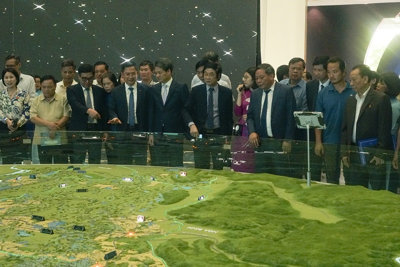 Các cán bộ, đại biểu thăm quan không gian bên trong triển lãm.