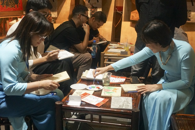 Các khách thăm quan thích thú trải nghiệm không gian sinh hoạt mang đậm nét Hà Nội.