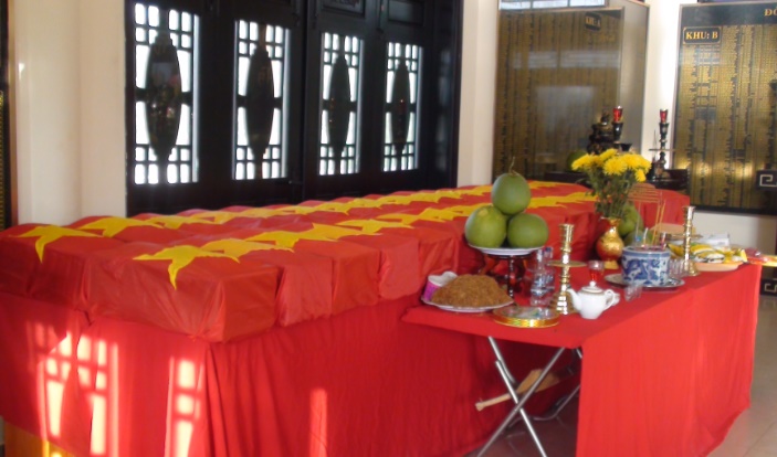 Hài cốt tìm thấy trong Sân Bay Biên Hòa đang được bảo quản tại Nghĩa Trang liệt sĩ tỉnh Đồng Nai. |