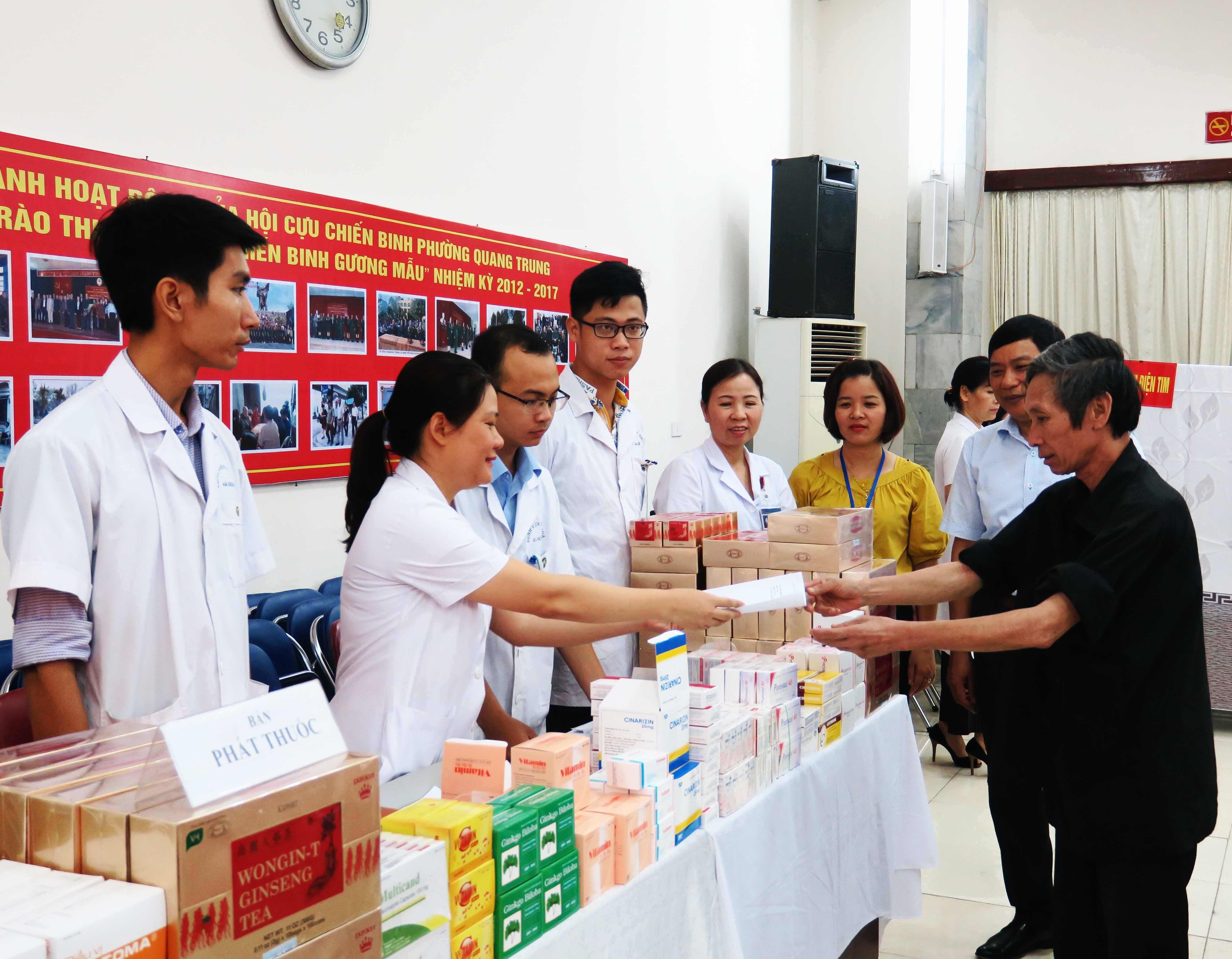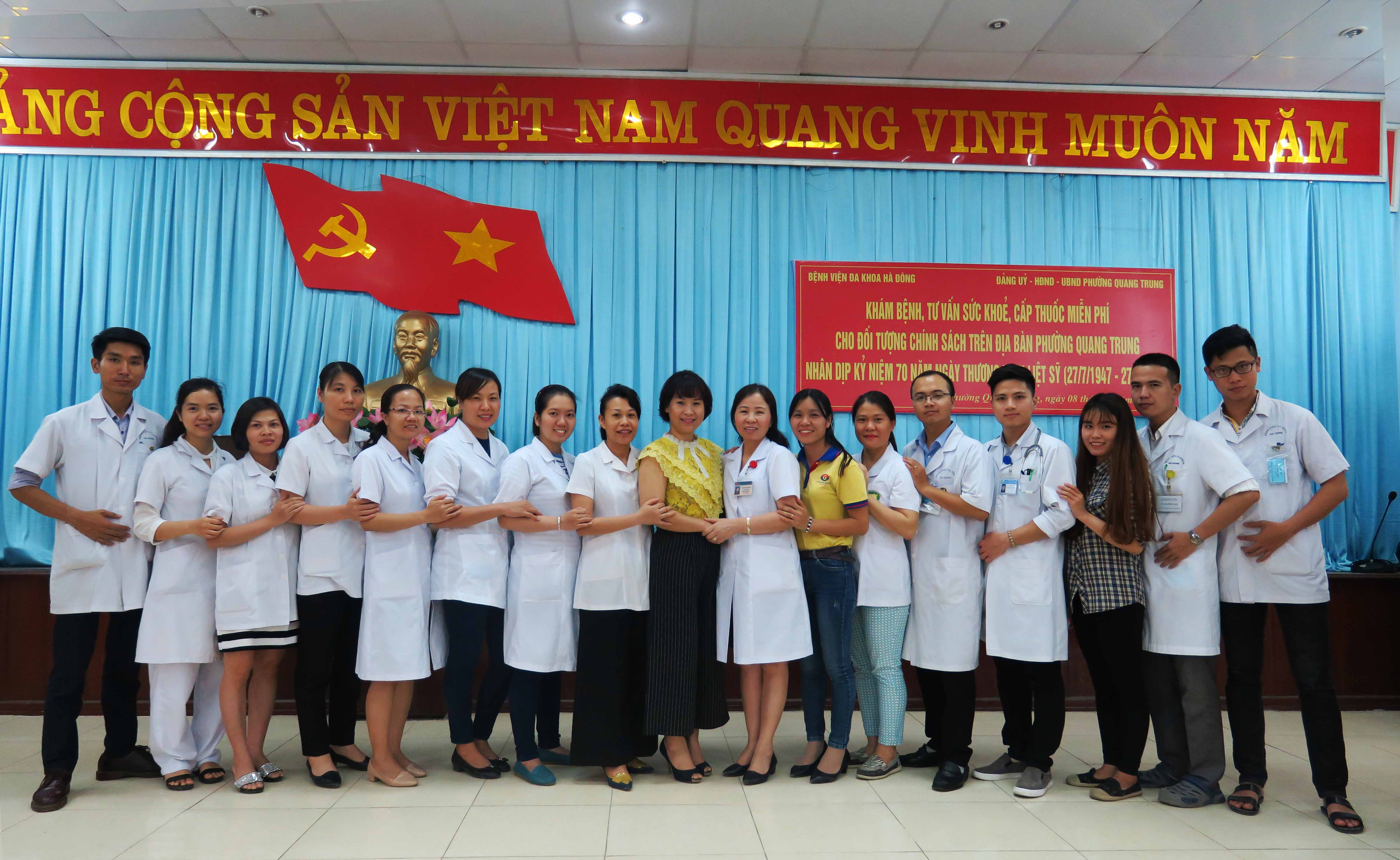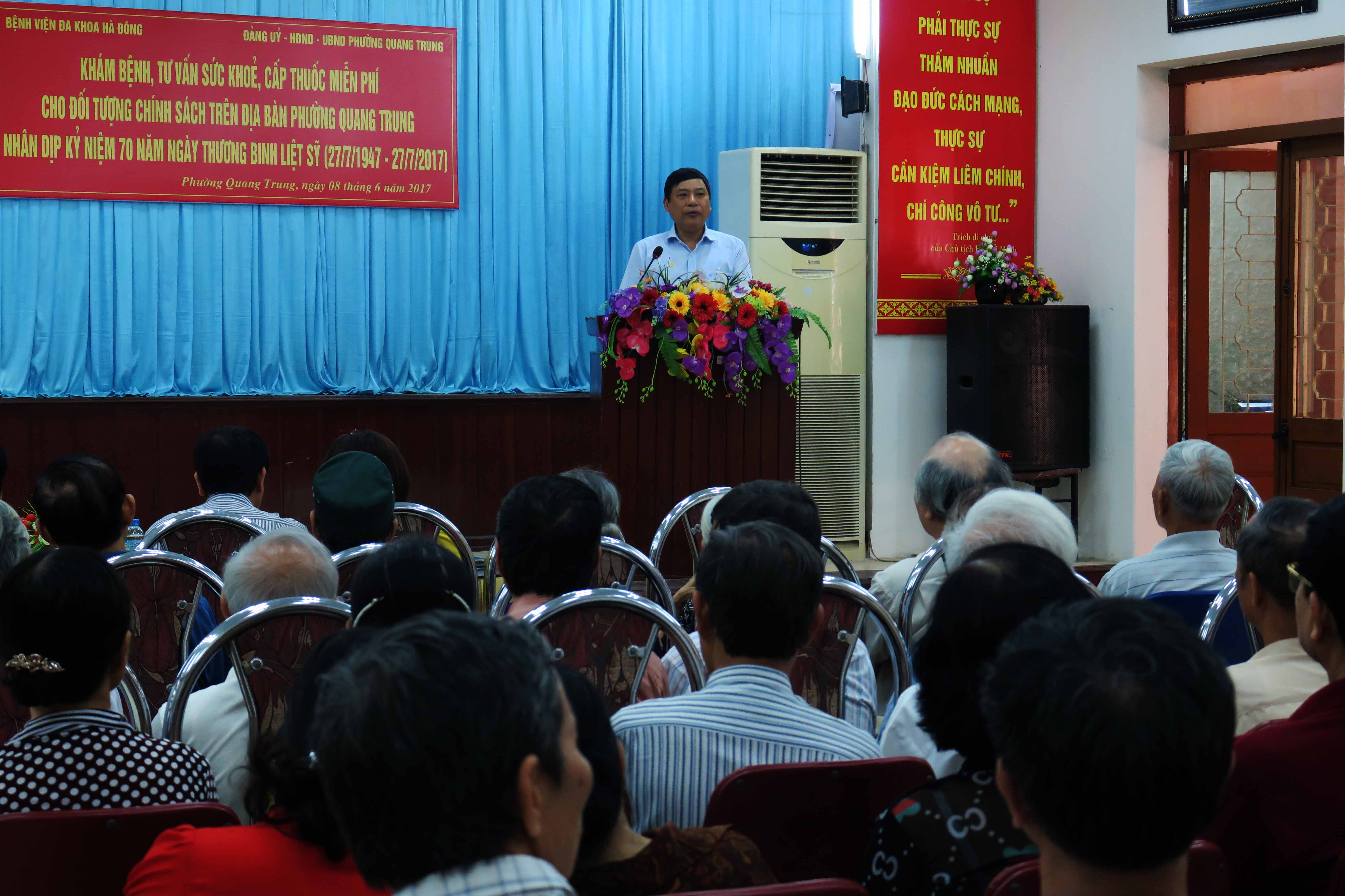 Tham dự có Ban Giám đốc Bệnh viện đa khoa Hà Đông, Đại diện Chủ tịch và Phó chủ tịch UBND Phường Quang Trung cùng các y, bác sĩ và đối tượng chính sách.
