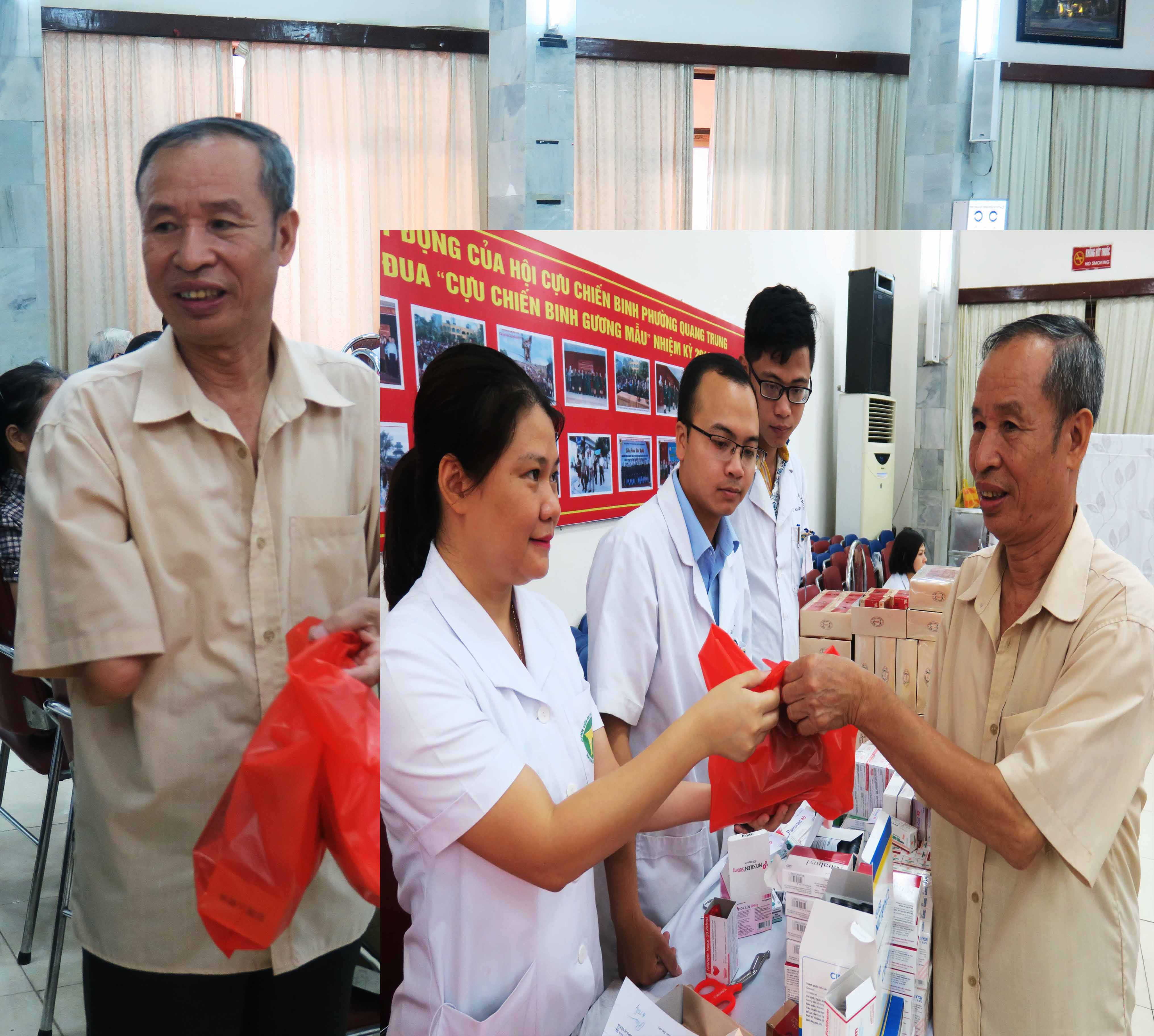 Dưới đây là một số hình ảnh trong chương trình trình Khám bệnh, tư vấn sức khỏe và cấp thuốc miễn phí cho các đối tượng chính sách tại Phường Quang Trung.