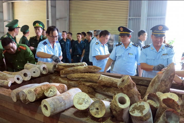 Trước đó, ngày 26/3, Cục Hải quan Đà Nẵng đã phối hợp với các lực lượng với khám xét các container nghi vấn và phát hiện hơn 9,1 tấn ngà voi được cất giấu, ngụy trang trong các thanh gỗ xẻ.