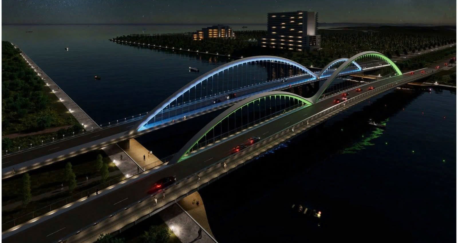 Phối cảnh cầu Nguyễn Tất Thành buổi đêm