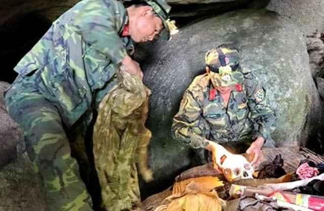Đưa hài cốt liệt sĩ từ dưới hang đá ở độ nghiêng sâu khoảng 35m