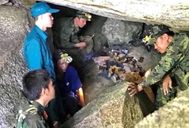 Trong quá trình cất bốc, khi vào sâu trong hang đá khoảng 35m, lực lượng của đơn vị phát hiện nhiều hài cốt nằm ở nhiều vị trí khác nhau, trong đó có một hộp sọ, cùng rất nhiều di vật như: tăng, võng, bi đông đựng nước, dép cao su, cà mèn, lược chải tóc, vị trí bếp nấu ăn và rất nhiều dụng cụ quân y.