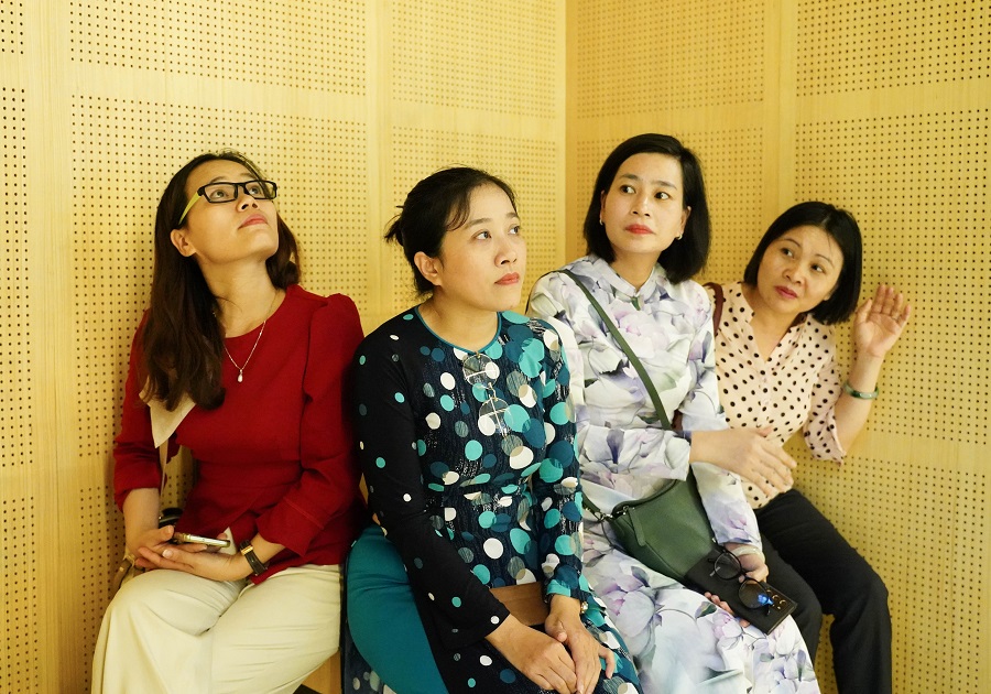 Bên trong không gian "hộp kể chuyện" có thiết kế phần ghế để khách tham quan có thể ngồi, lắng nghe các nội dung thuyết minh do mình lựa chọn.