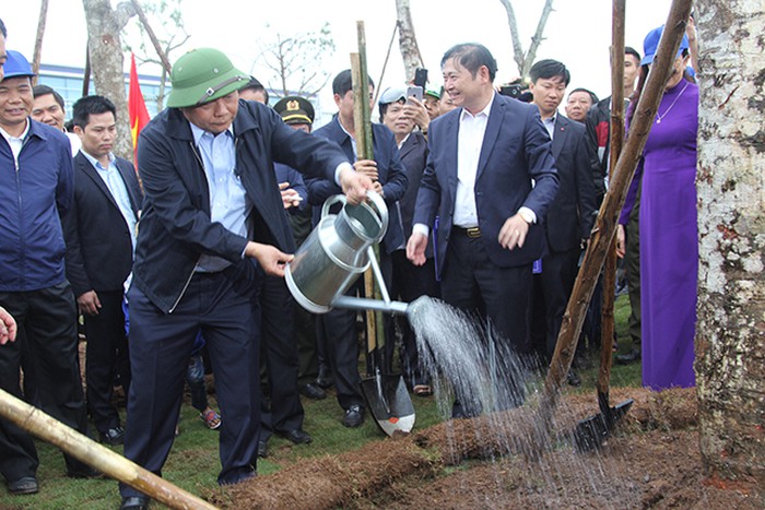 Thủ tướng trồng cây trong khuôn viên nhà máy.