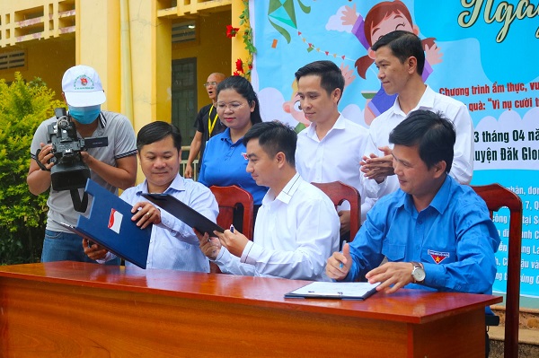 Giám đốc ITTPC Trần Quốc Duy (ngồi chính giữa), Bí thư Tỉnh Đoàn Đăk Nông Châu Ngọc Lương anh Đoàn Ngọc Hiếu - Phó Chủ tịch Hội Doanh nhân trẻ tỉnh Đắk Nông ký kết hợp tác.
