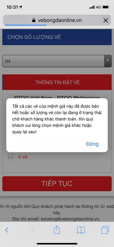 Đến thời điểm hiện tại, tất cả các trang bán vé của VFF đều thông báo hết vé và chưa có thông tin chính thức từ VFF về sự cố này.