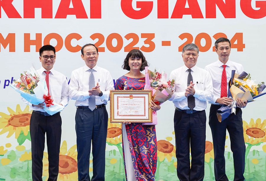 Tại buổi lễ, ông Phạm Thành Kiên - Bí thư Quận ủy Quận 3 đọc thư của Chủ tịch nước Võ Văn Thưởng gửi ngành giáo dục nhân dịp khai giảng năm học 2023-2024. Thay mặt lãnh đạo địa phương, ông gửi những lời chúc tốt đẹp nhất đến đội ngũ giáo viên, học sinh nhà trường trong năm học mới.