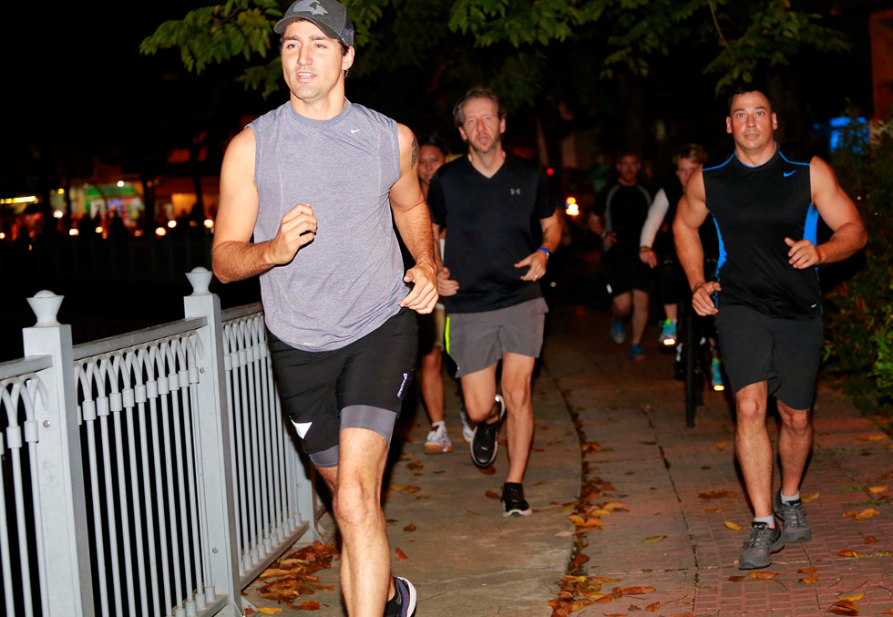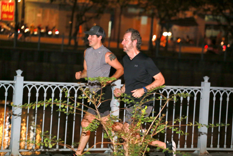 Tối cùng ngày, Thủ tướng Canada cùng các nhân viên chạy thể dục bên bờ kênh Nhiêu Lộc. Ảnh Thanh niên