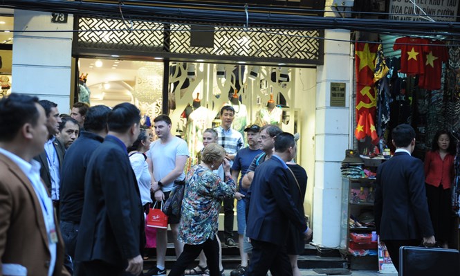 Đến thăm Việt Nam lần thứ 2 và dự Hội nghị Cấp cao APEC, chiều 8/11, Tổng thống Chile Michelle Bachelet đã dành thời gian thăm quan mua sắm tại phố cổ Hà Nội.