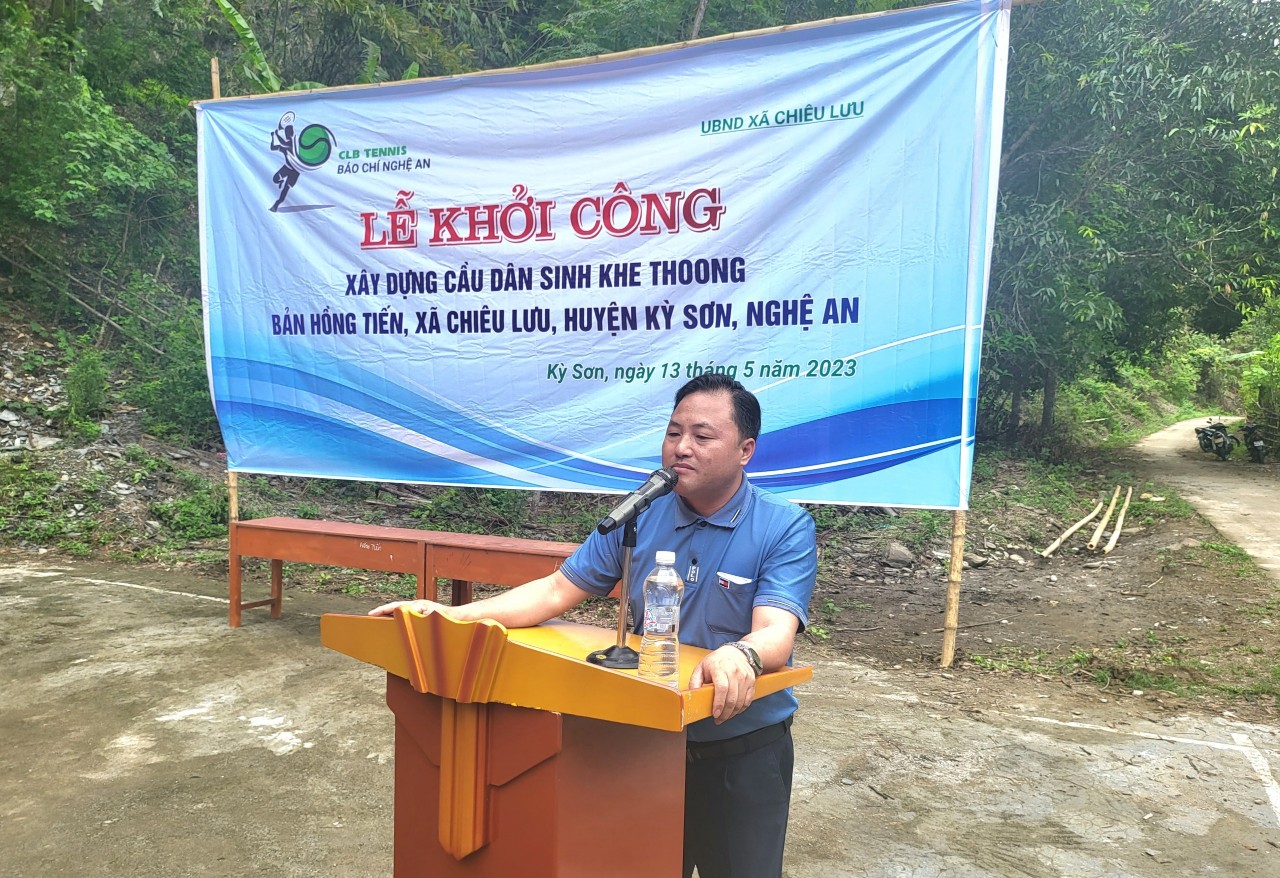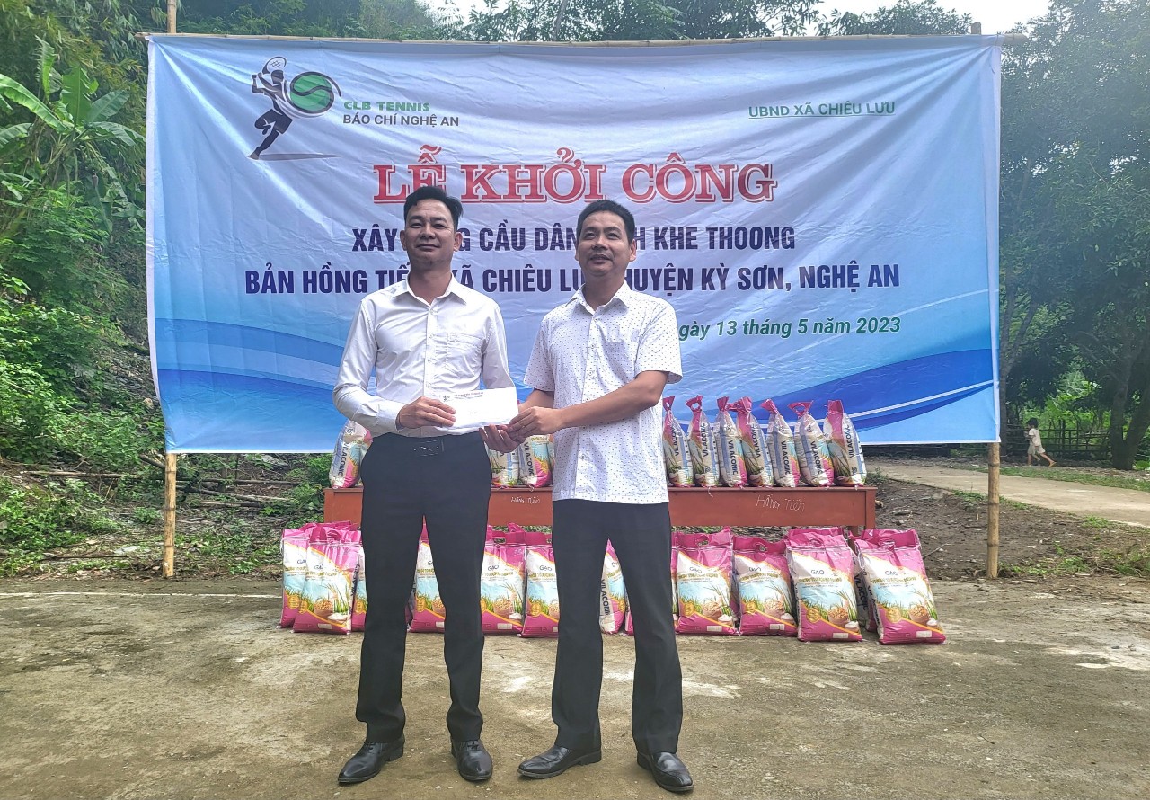 Trước muôn vàn khó khăn và nhu cầu thiết thực của người dân nơi đây, CLB Tennis báo chí Nghệ An đã kêu gọi, ủng hộ và tổ chức khởi công xây dựng cầu dân sinh Khe Thoong cho đồng bào DTTS tại bản Hồng Tiến.