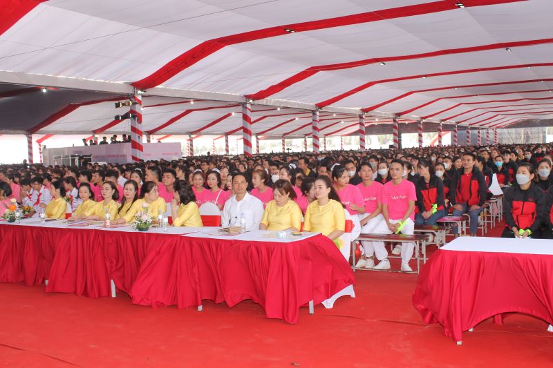 Cán bộ, công nhân Công ty CP May Sông Hồng - Xuân Trường II tại buổi lễ - Ảnh: Hồ Thanh.