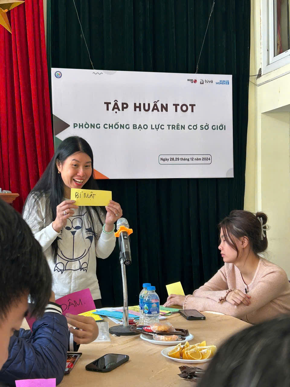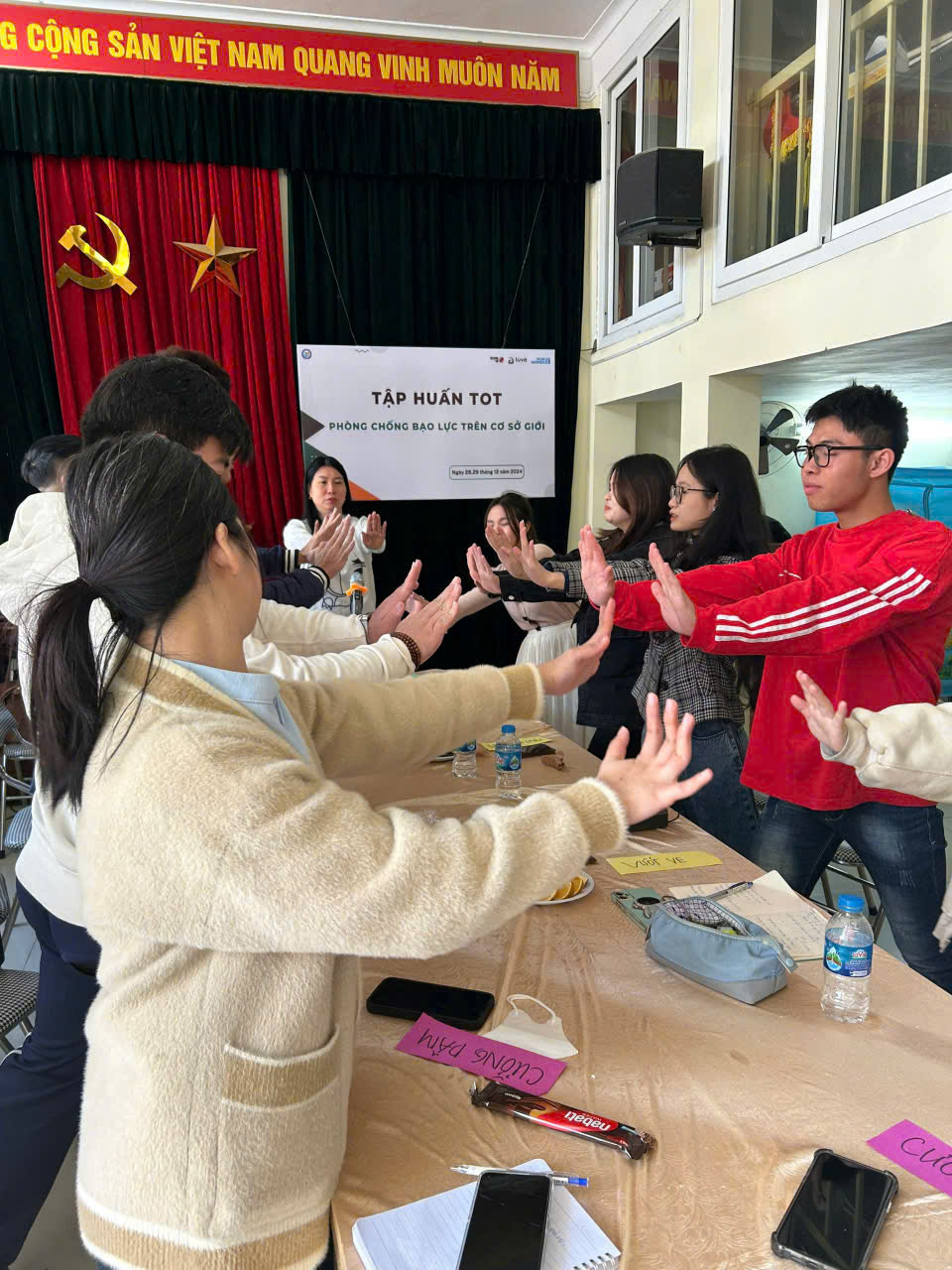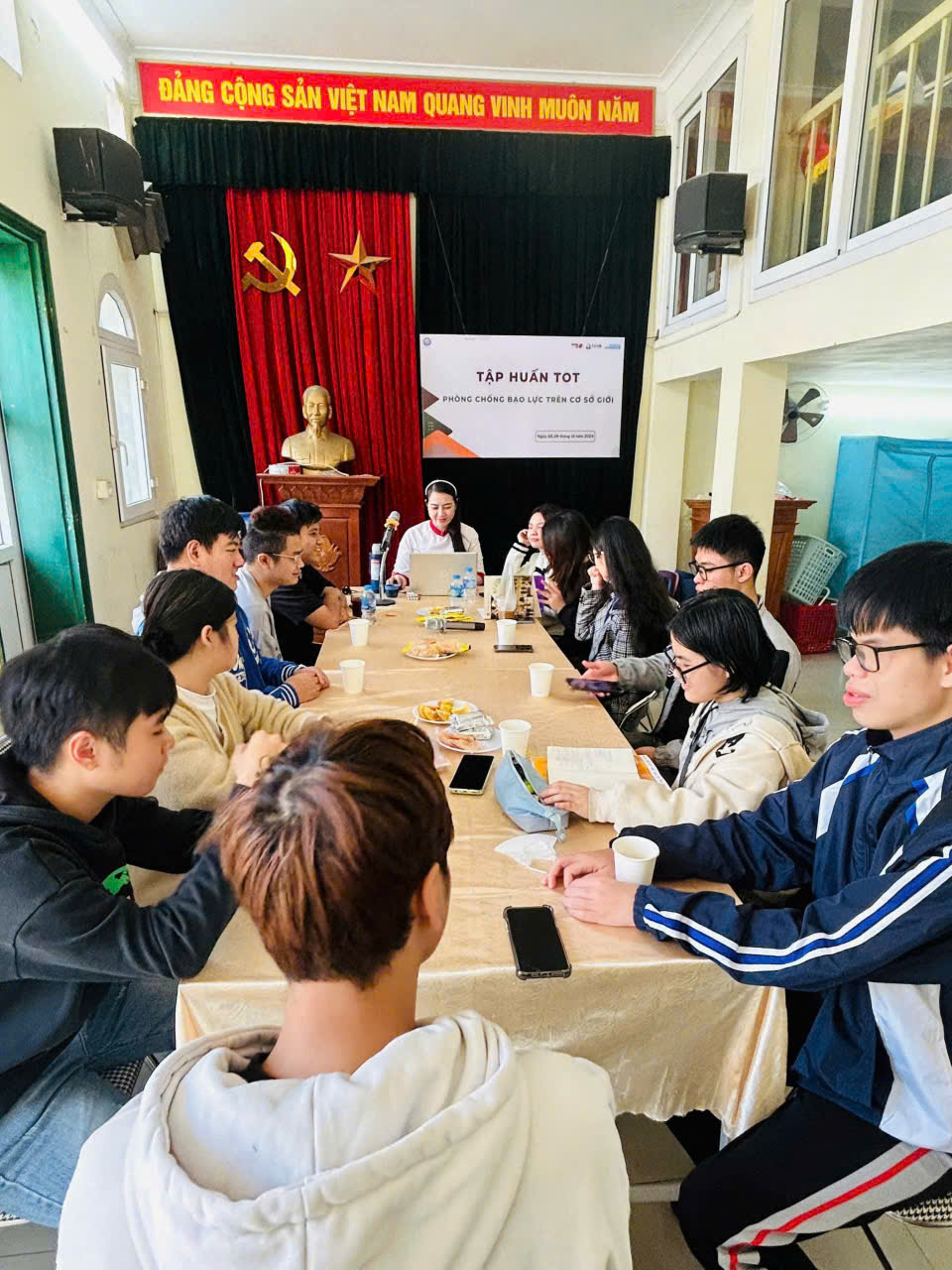 Khóa tập huấn TOT (Training of Trainers): Diễn ra trong 3 buổi, khóa học cung cấp kiến thức cơ bản về giới, bình đẳng giới và cách phòng tránh, ứng phó với bạo lực. Đặc biệt, khóa học hướng dẫn kỹ năng tổ chức các chương trình truyền thông cộng đồng.