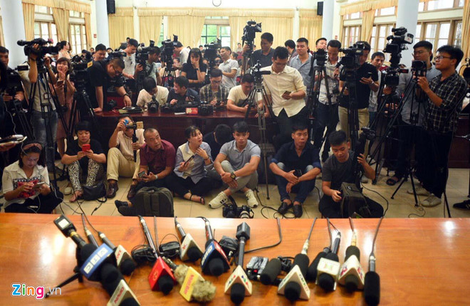 Giới báo chí có mặt tại trụ sở UBND quận Cầu Giấy để đưa tin về vụ việc. Ảnh: Duy Hiệu.
