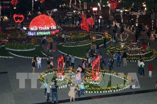 | Người dân vui xuân mới tại khu vực đường hoa Trần Hưng Đạo, thành phố Đà Nẵng. Ảnh: Trần Lê Lâm – TTXVN |