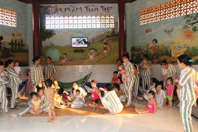 “Khi các cháu theo mẹ vào đây, chúng tôi hiểu được rằng các cháu luôn thiếu thốn về mặt tinh thần và vật chất. Vì thế, chúng tôi luôn quan tâm, gần gũi các cháu. Về chế độ, các cháu được hưởng các chế độ theo đúng quy định của pháp luật. Những người mẹ là phạm nhân được nghỉ sinh theo chế độ 6 tháng, mức lao động chỉ bằng nửa phạm nhân khác. Ngoài ra, các cặp mẹ con ở đây còn thường xuyên được Ban giám thị, Đảng ủy đơn vị, Ban chỉ huy khu giam giữ, Đoàn Thanh niên, Hội Phụ nữ quan tâm thăm hỏi, động viên, nhất là vào những dịp lễ, Tết như Tết Trung thu, Quốc tế Thiếu nhi hay nhất là Tết Nguyên đán... Tất cả nhằm giúp các cháu được sống như trong điều kiện bình thường nhất có thể”.