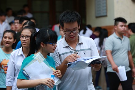 | Các thí sinh trao đổi khi rời khỏi phòng thi. (Ảnh: Internet) |