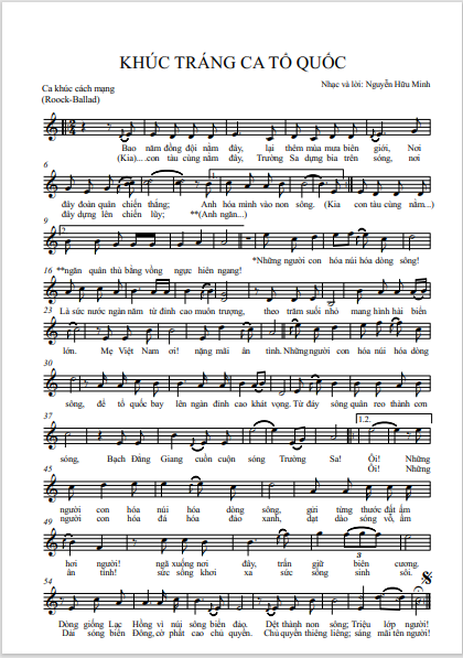 Tôi rất vui khi được Hội Đồng nghệ thuật của Hội Âm Nhạc Hà Nội chọn đưa vào chương trình báo cáo tác phẩm mới: “Khúc Tráng Ca Tổ Quốc”. Đây là ca khúc tôi đã ấp ủ suốt hành trình là người lính, là thương binh trực tiếp chiến đấu, ca khúc ra đời nhân kỷ niệm 50 năm ngày nhập ngũ.