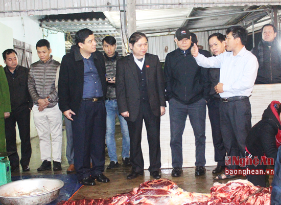 Lãnh đạo tỉnh Nghệ An kiểm tra cơ sở giết mổ bò của ông Nguyễn Xuân Hương tại xã Nghi Phú, TP Vinh.