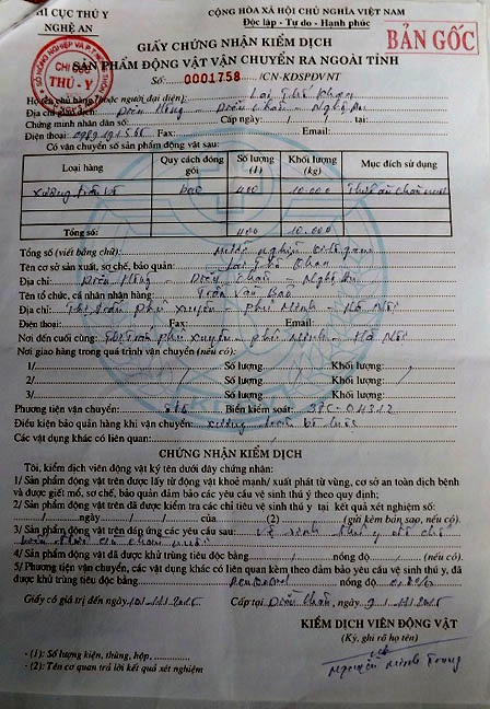 | Khi được Chi cục Chăn nôi - Thú ý cấp giấy kiểm dịch, lô hàng được phép lưu thông. Năm 2016, nguồn thu từ kiểm dịch ở Nghệ An lên tới gần 1,7 tỷ đồng. |