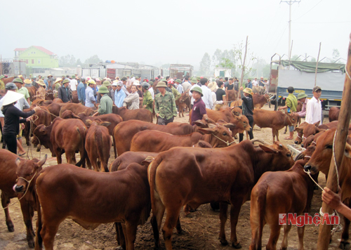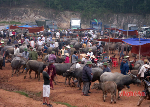 Mỗi phiên chợ Trù Ú có tới hàng chục con trâu, bò được thương lái mua vận chuyển ra ngoại tỉnh.
