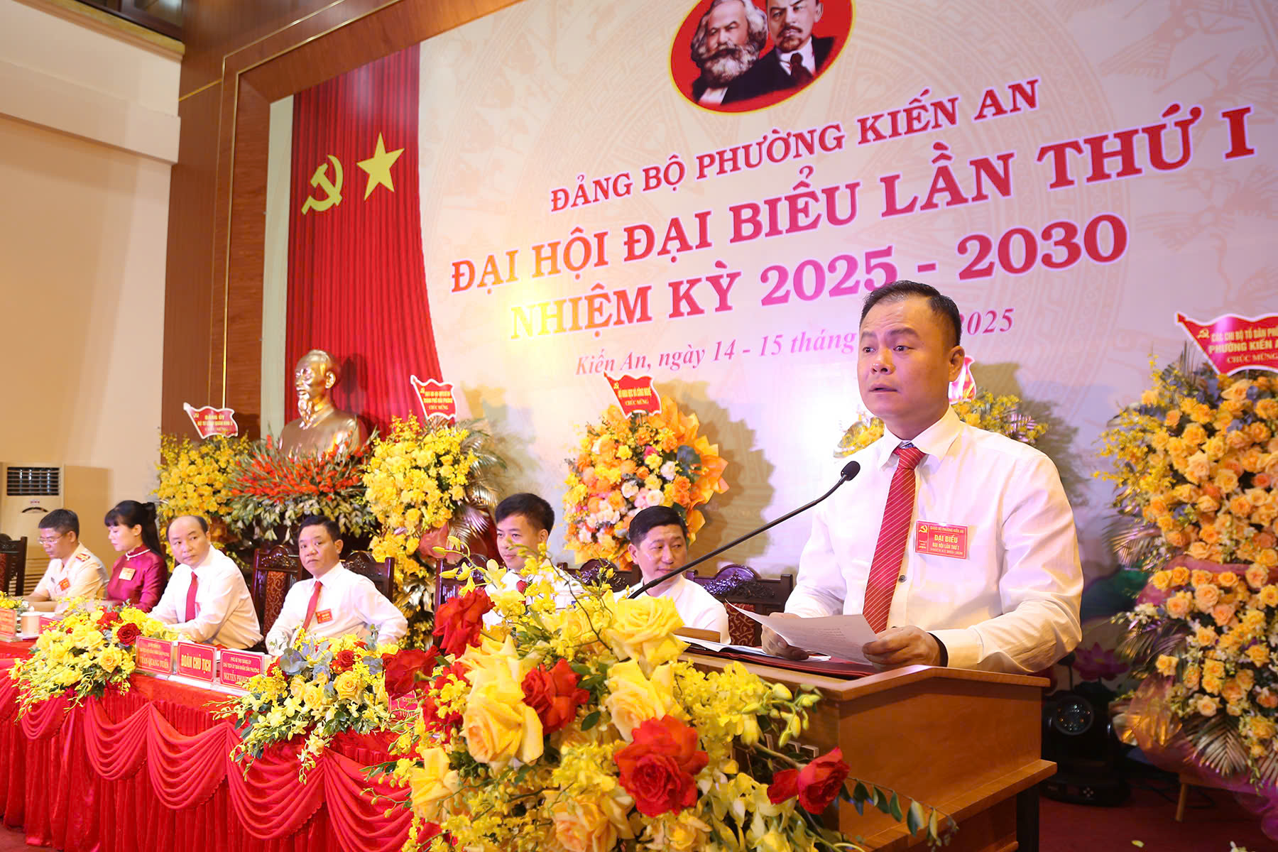 Phát biểu tại Đại hội, đồng chí Trần Quang Tuấn – Bí thư Đảng ủy phường Kiến An nhấn mạnh: “Đại hội đại biểu Đảng bộ phường lần thứ I, nhiệm kỳ 2025 – 2030 là dấu mốc quan trọng, đánh dấu bước phát triển mới sau quá trình hợp nhất, ổn định và phát triển. Đây là dịp để toàn Đảng bộ, chính quyền và nhân dân trong phường cùng nhìn lại chặng đường 5 năm vừa qua, đánh giá đúng những kết quả đạt được, chỉ ra hạn chế, từ đó xác định rõ mục tiêu, phương hướng, giải pháp thiết thực, khả thi nhằm xây dựng phường Kiến An văn minh, hiện đại, phát triển bền vững.”