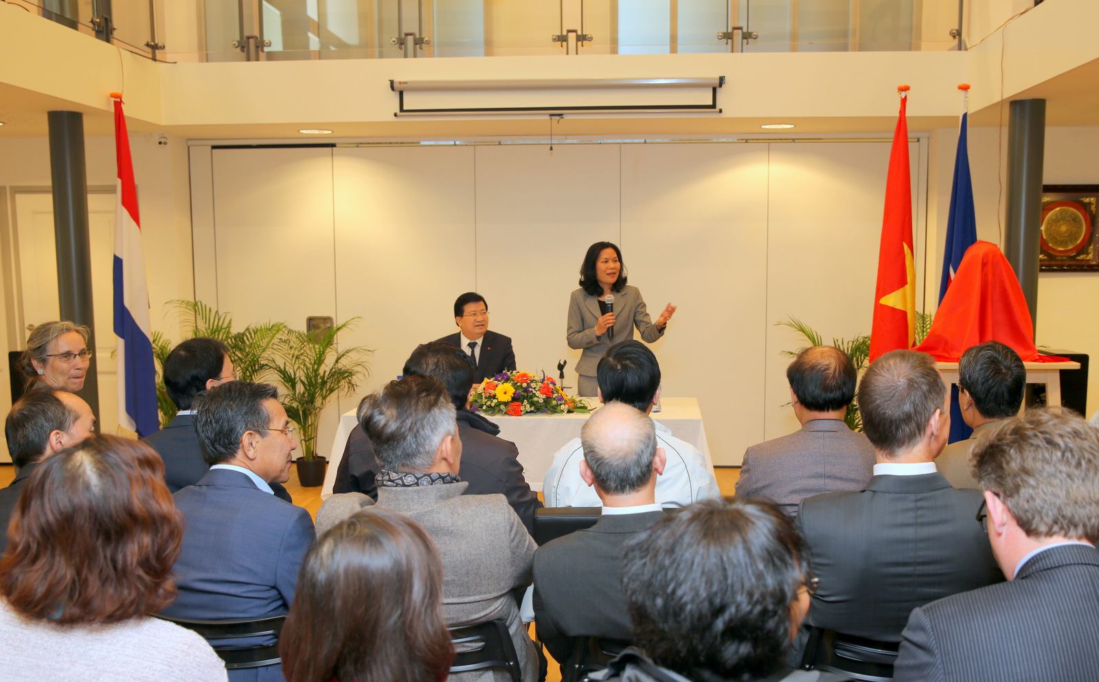 Phó Thủ tướng đồng tình với ý kiến phát biểu của Đại sứ Việt Nam Ngô Thị Hoàn cùng đại diện kiều bào cho rằng Hà Lan là một trong những đối tác châu Âu quan trọng của Việt Nam về kinh tế thương mại và đầu tư; là cửa ngõ để Việt Nam thâm nhập thị trường châu Âu.