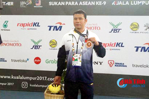 VĐV bơi lội Đặng Văn Công của Hà Tĩnh vừa xuất sắc giành huy chương đồng ở nội dung 100m bơi ếch tại Đại hội thể thao người khuyết tật Đông Nam Á 2017.