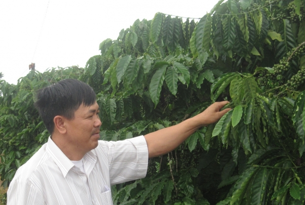 Ông Tạ Ngọc Quang Chủ tịch HCCB, tổ trưởng hợp tác sản xuất cà phê sạch bền vững của xã Đắk Mar, Đắk Hà, Kon Tum làm giàu cho quê hương.