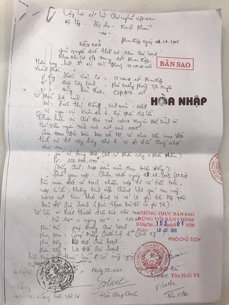 Biên bản mua đất của bà Trần Thị Hằng với UBND xã Phan Hiệp, Bình Phước,