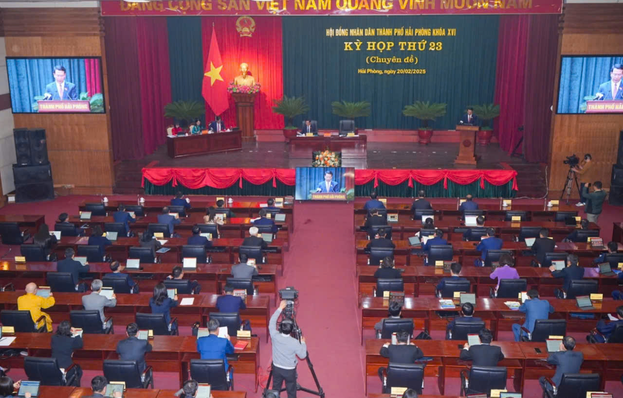 Kỳ họp đã thông qua 11 Nghị quyết, bao gồm: Chủ trương đóng góp kinh phí từ nguồn ngân sách thành phố thực hiện Dự án đầu tư xây dựng tuyến đường sắt Lào Cai - Hà Nội - Hải Phòng (đoạn qua địa bàn Hải Phòng); Sửa đổi, bổ sung một số điều của Quy định nguyên tắc, tiêu chí, định mức phân bổ vốn đầu tư công nguồn ngân sách Thành phố giai đoạn 2021 - 2025 ban hành kèm theo Nghị quyết số 12/2020/NQ-HĐND ngày 22/12/2020; Điều chỉnh, bổ sung danh mục các khu đất thực hiện đấu thầu dự án đầu tư có sử dụng đất giai đoạn 2025 - 2026; Quy định nội dung và mức chi thực hiện nhiệm vụ khoa học và công nghệ sử dụng ngân sách Thành phố; Ban hành danh mục dịch vụ sự nghiệp công sử dụng ngân sách nhà nước thuộc lĩnh vực tài nguyên và Môi trường trên địa bàn TP.Hải Phòng; Quy định về mức thu, đơn vị tính phí bảo vệ môi trường đối với khai thác khoáng sản; Quyết định thành lập một số cơ quan chuyên môn thuộc UBND TP.Hải Phòng; Chế độ, chính sách hỗ trợ thêm đối với cán bộ, công chức, viên chức, người lao động trong thực hiện sắp xếp tổ chức bộ máy của hệ thống chính trị; Sửa đổi, bổ sung một số điều của Nghị quyết số 02/2023/NQ-HĐND ngày 18/7/2023 về “xây dựng nông thôn mới giai đoạn 2021 - 2025 và Nghị quyết số 11/2024/NQ-HĐND ngày 04/10/2024 “sửa đổi, bổ sung một số điều của Nghị quyết số 02/2023/NQ-HĐND ngày 18/7/2023”; Sửa đổi Nghị quyết số 11/NQ-HĐND ngày 29/6/2021 của HĐND thành phố về việc thành lập Văn phòng Đoàn ĐBQH và HĐND thành phố.