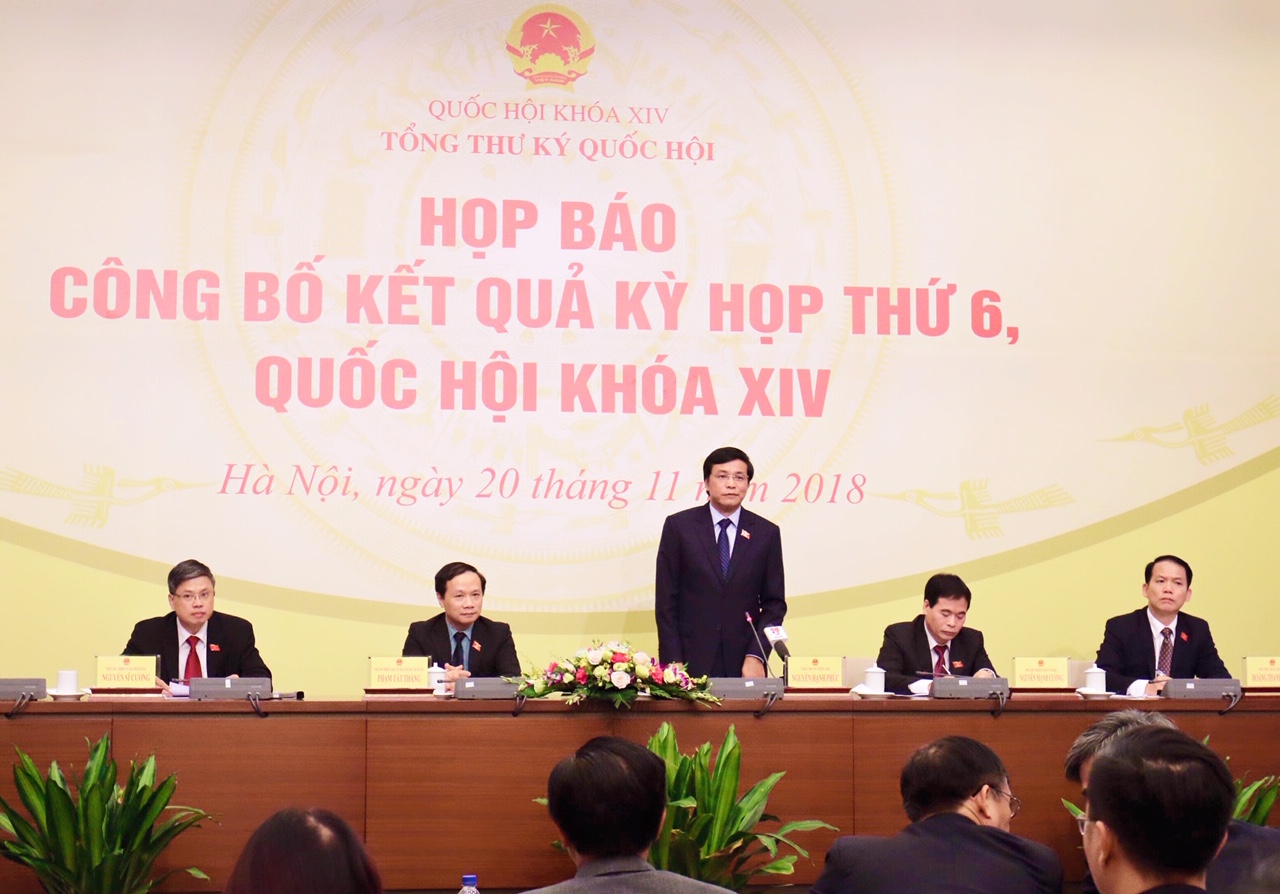 | Họp báo công bố kết quả kỳ họp thứ 6, Quốc hội khóa XIV. Ảnh: VGP/Nhật Bắc |