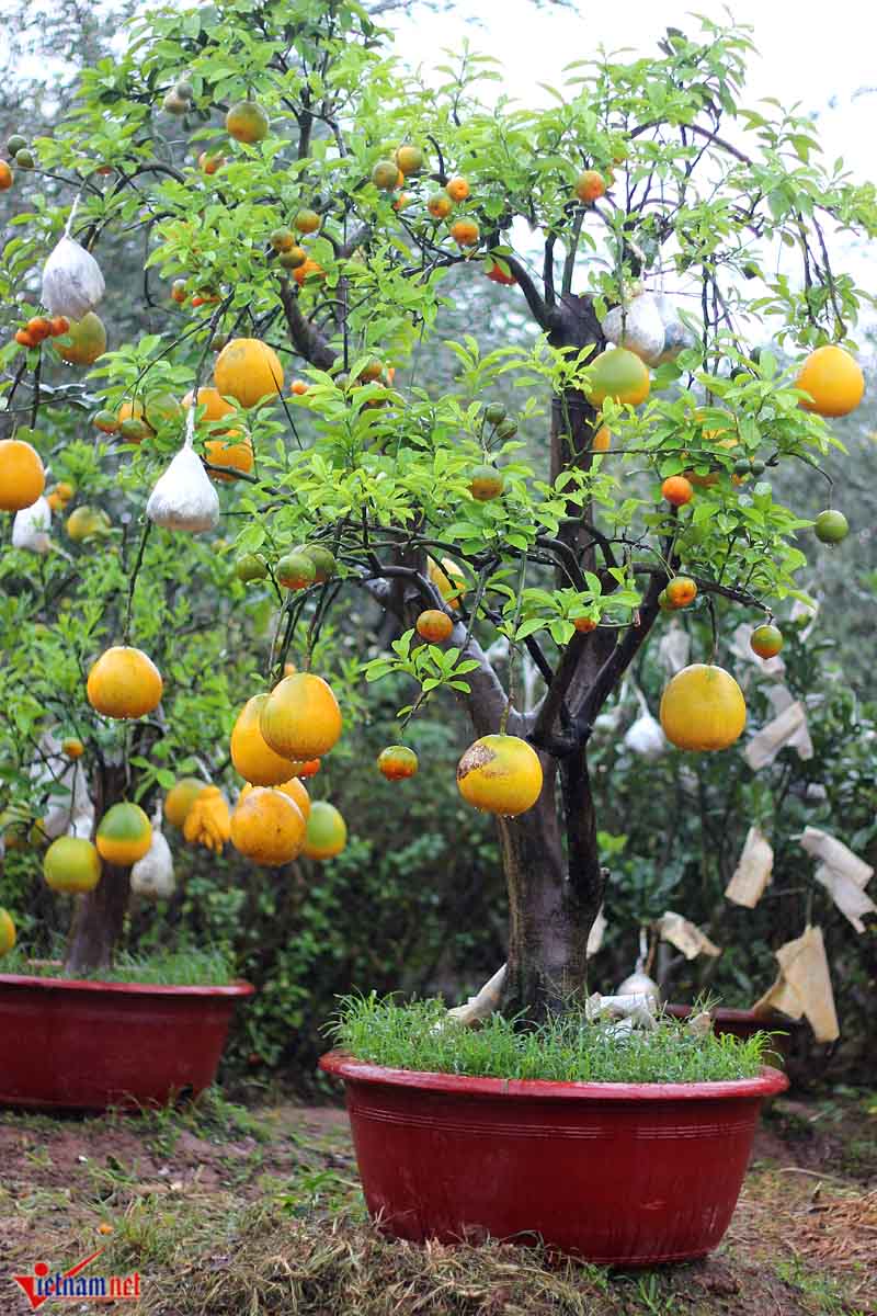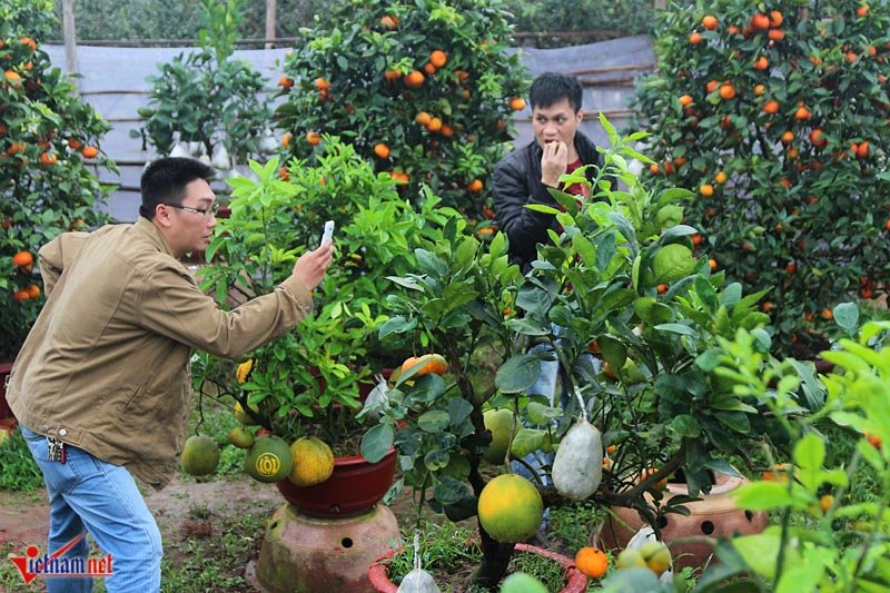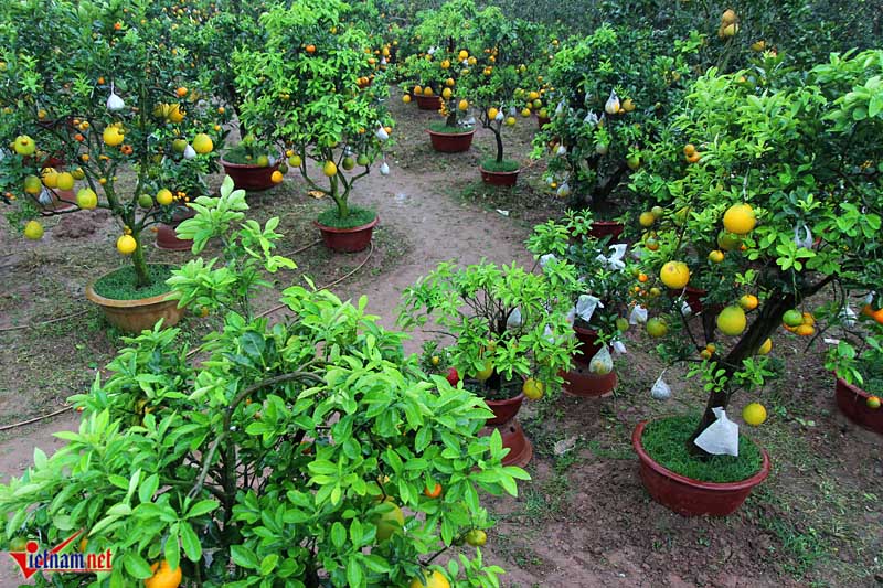 Hiện tại vườn của ông Giáp có hơn 60 gốc cây cảnh ngũ quả nhưng quá nửa trong đó đã có người đặt hàng từ cách đây nhiều tháng.